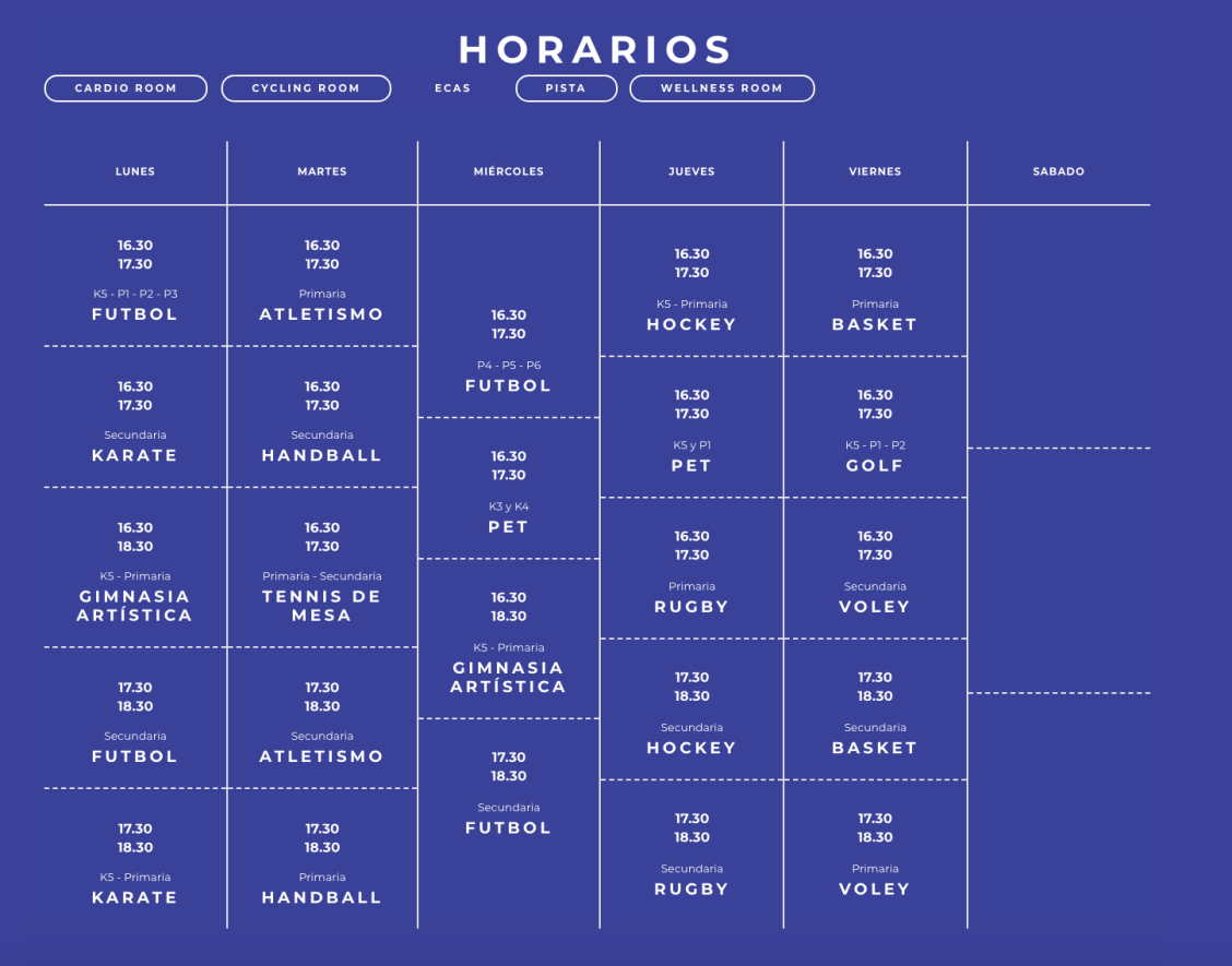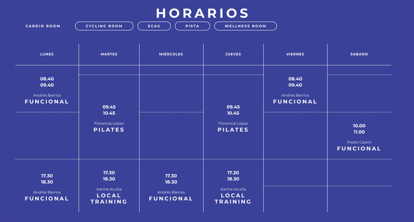 En International Sports Center se ofrecen actividades como Aero Local, Entrenamiento funcional, Pilates, Cycle, Karate, Básquetbol, Fútbol, Running y Gimnasia artística.