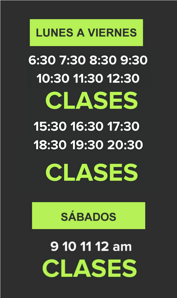 6:30, 7:30, 8:30, 9:30, 10:30, 11:30, 12:30 (7 clases)